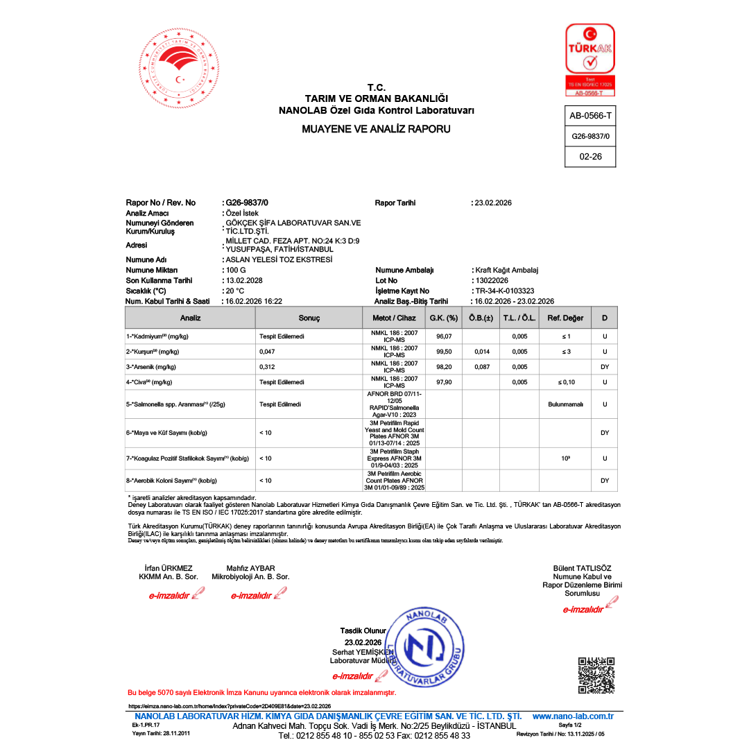 Aslan Yelesi Toz Ekstresi 100 gr. Cam Kavanoz