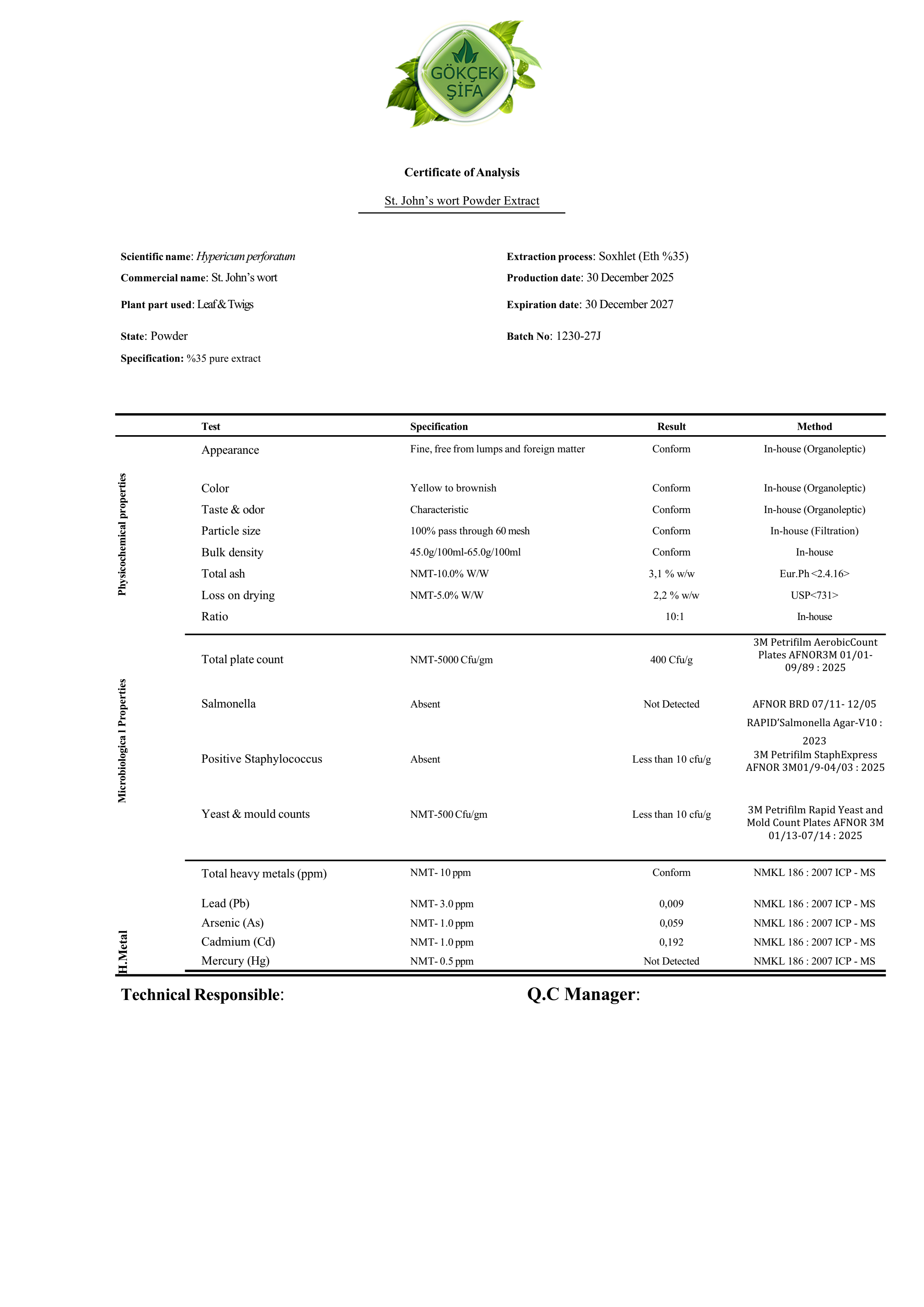 Sarı Kantaron Toz Ekstresi Cam  70 gr